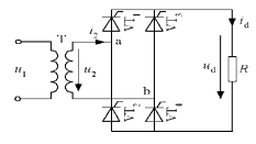 如图所示的单相桥式全控整流电路,U2=200V,a=60°,此时整流电压平均值