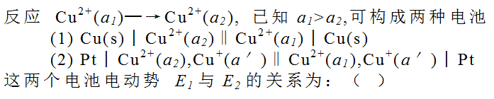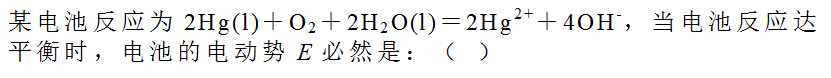某一反应,当反应物和产物的活度都等于1 时,要使该反应能在电池内自发进行,则:( )
