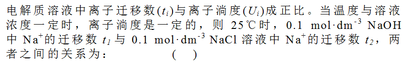 通电于 HCl 溶液,在阴极上 H+放电电量等于通过溶液的总电量,所以 H+迁移的电量就等于它在阴极上放电的电量。