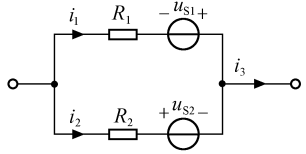 题图所示电路中,已知uS1=6V, uS2=2V,R1=3Ω, R2=1Ω, i3=4A,试求电流i1和i2分别为