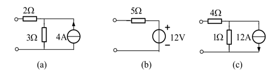 答案: 【 等效为1A的电流源和5欧姆的电阻并联】