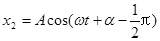 两个质点各自作简谐振动,它们的振幅相同、周期相同.第一个质点的振动方程为x1 = Acos(ωt + α).当第一个质点从相对于其平衡位置的正位移处回到平衡位置时,第二个质点正在最大正位移处.则第二个质点的振动方程为