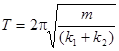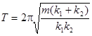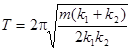 劲度系数分别为k1和k2的两个轻弹簧串联在一起,下面挂着质量为m的物体,构成一个竖挂的弹簧振子,则该系统的振动周期为