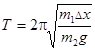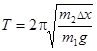 轻弹簧上端固定,下系一质量为m1的物体,稳定后在m1下边又系一质量为m2的物体,于是弹簧又伸长了Δx.若将m2移去,并令其振动,则振动周期为