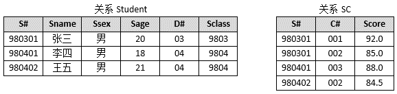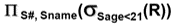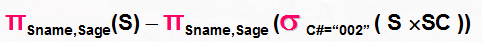 已知关系S(S#,Sname,Sage,Sclass), SC(S#,C#,Score)。如下所示关系代数表达式的含义是________。