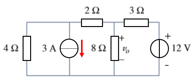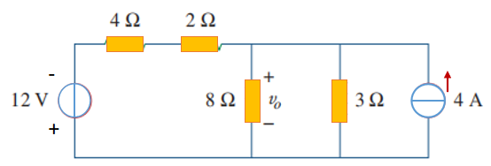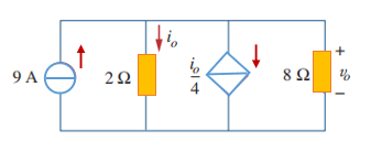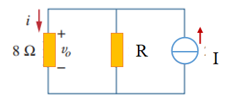 1. 如图(a)所示,要求电阻8Ω两端电压v0,可以采用电源等效变换的方法,得到图(b)所示的电路形式,请问等效电阻R为( )Ω,电流源I为( )A,求得的电压v0为( )V。