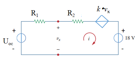 如图(a)所示,要求电压vx,可以采用电源等效变换的方法,得到图(b)所示的电路形式,请问受控源系数k为( )。