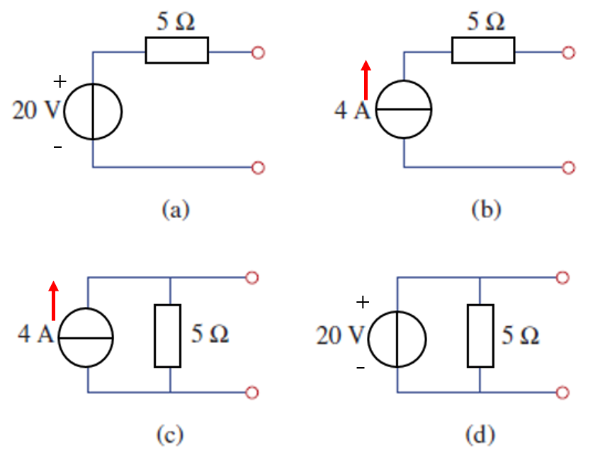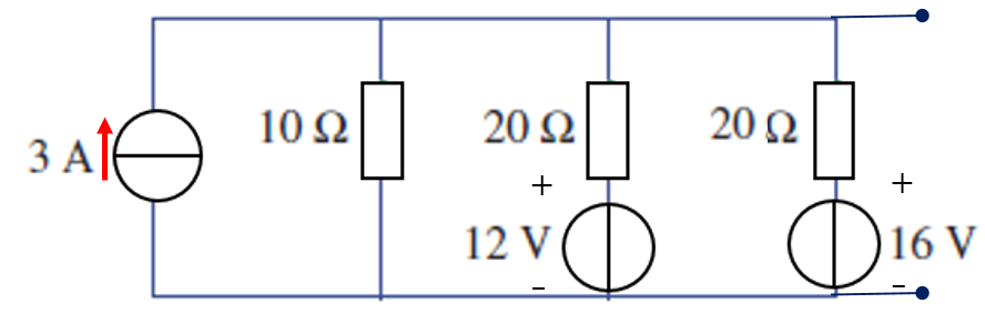 用一个电压源和电阻的串联方式来等效下列电路,请问此时的电压源大小(假设上方为高电位,下方为低电位)