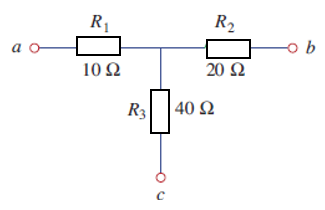 将下图星型连接的电阻网络转换成一个三角形连接的电阻网络,那么ab端点之间的电阻Rab为 欧姆