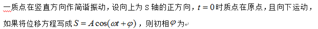 1.一物体沿x轴作简谐振动,振幅A=0.12m,周期T=2s。当t=0时,物体的位移x=0.06m,且向x轴正方向运动。此简谐振动的初相位是( )