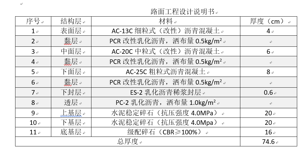 请对照某高速公路路面结构图及路面工程设计说明书,完成下列题目。