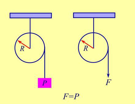 将一轻绳绕过一滑轮边缘,绳与滑轮之间无滑动,若 (1) 将重量为P的砝码挂在绳端; (2) 用一恒力为F=P向下拉绳端,如图所示,分别用