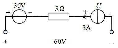 在如图所示的电路中,电压U 为( )。