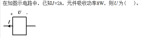 在图示电路中,已知U =4V,电流 I = –2A,则电阻值 R 为( )。
