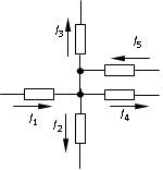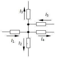 图示电路中,已知I1 = 4A,I2 = –2A,I3 = 1A,I4 = –3A,I5为( )。