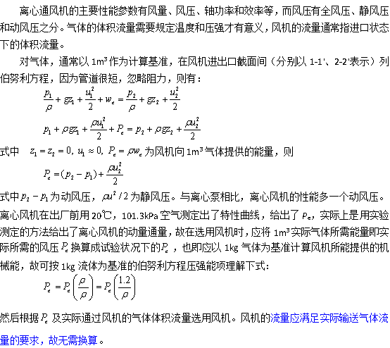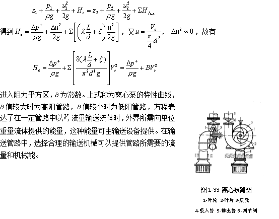 在较常见的有泵有换热器的稳态连续流体流动管路中进行全范围的能量衡算时,稳态过程有:输入能量=输出能量,以1 kg流体为衡算基准,有(势能、动能、压强能、热力学能U kJ/kg、功we kJ/kg、热qe