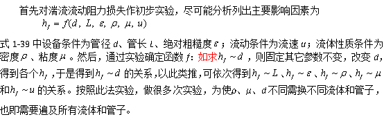 D: 以准数作为变量,变化此变量的数值的实验操作更有选择余地,可选择最方便的操作使准数变量发生变化。以变化Re为例,改变4个物理量的任一个或几个的数值均可改变Re,但其中以改变u最为方便,因为只要变化阀门的开度即可实现,而不需通过置换流体改变ρ使Re获得改变,所以测定实验得到简化,且在小实验装置上,以水、空气等常见流体为介质,通过改变阀门开度、使用人工粗糙管等方法得到普遍适用的准数关系曲线或方程,即实现了“由此及彼,由小及大”的实验思想。
