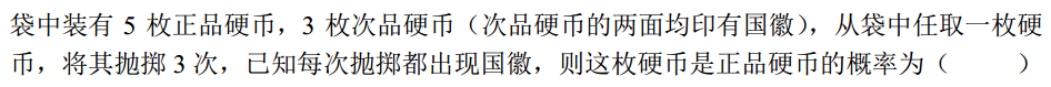 据统计,某疫区新冠肺炎发病率为0.47%,且新冠肺炎患者两周内的死亡率为 4.47%;而未患新冠肺炎的人两周内死亡率为0.06%。现某人死亡, 则此人患新冠肺炎的概率是【】