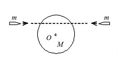 一圆盘正绕垂直于盘面的水平光滑固定轴O转动,如图所示,射来两个质量相同,速度大小相同,方向相反并在一条直线上的子弹,子弹射入圆盘并且留在盘内,则子弹射入后的瞬间,圆盘的角速度