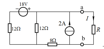 当R=16欧姆时,下图所示电路中ab端口的开路电压为 V。
