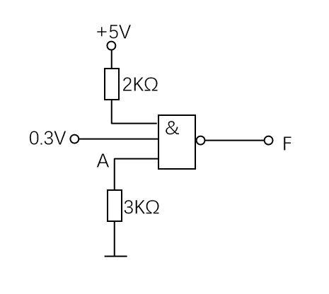 三输入端TTL与非门如图所示,图中A点的电位为 ,F点的电位为 。