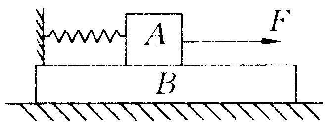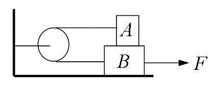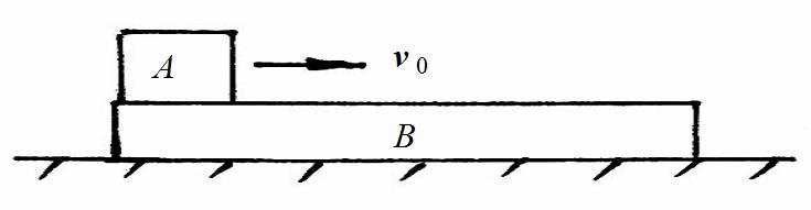 木板B静止置于水平台面上,小木块A放在B板的一端上(如图)。已知mA = 0.25kg,mB = 0.75kg, A与B间的摩擦因数
