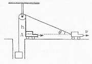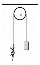 如图所示,不可伸长的轻绳跨过一个质量可以忽略的定滑轮,两端分别吊有重物和小猴,并且由于两者质量相等,所以开始时重物和小猴都静止地吊在绳端。当小猴以相对于绳子的速度v沿绳子向上爬行时,重物相对于地面的速度为( )。