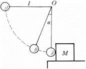 如图所示,用长度为l的细线将一个质量为m的小球悬挂于O点。手拿小球将细线拉到水平位置,然后释放。当小球摆动到细线竖直的位置时,正好与一个静止放置在水平桌面上的质量为M的物体作完全弹性碰撞。则碰撞后小球达到的最高位置所对应的细线张角α为( )。