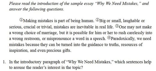 of the sample essay “Why We Need Mistakes,” and answer the following questions.