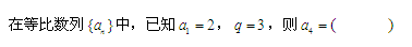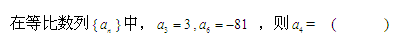 等比数列{an}:9,3,1,…,则公比q = ( )
