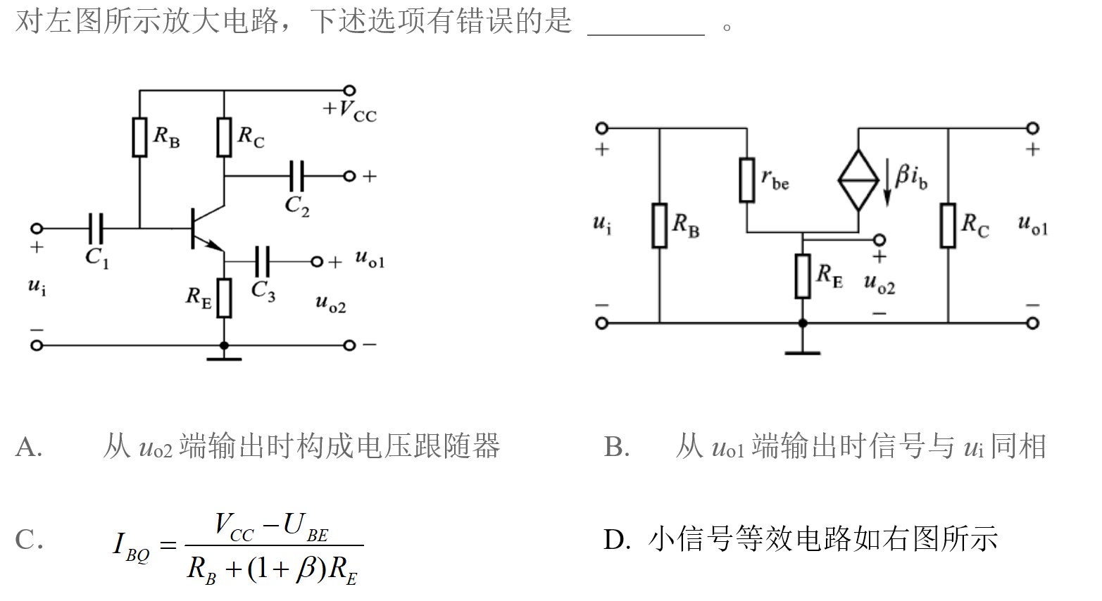 单级晶体管放大电路中,输出电压与输入电压反相的有共 极电路。
