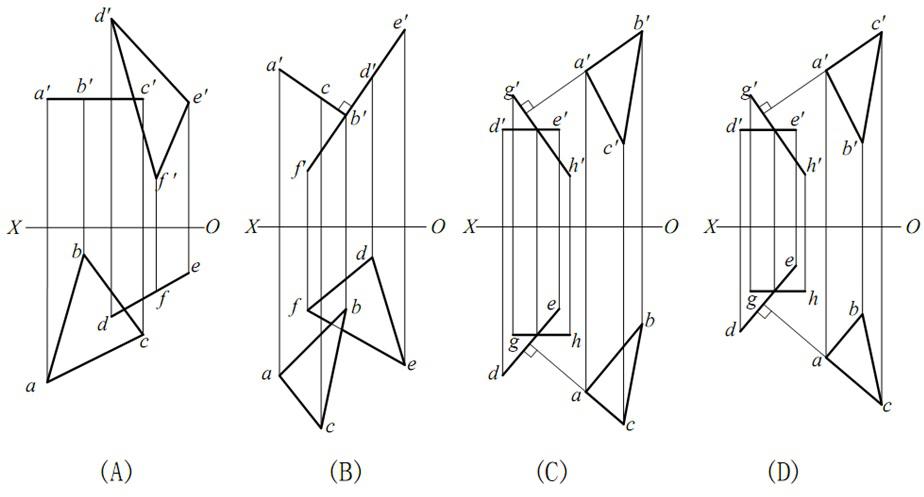 D: AB是水平线,CD是正平线,EF是一般位置直线