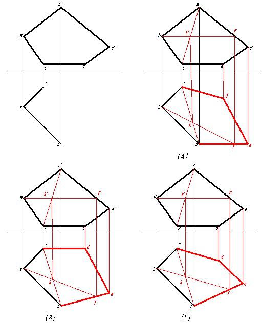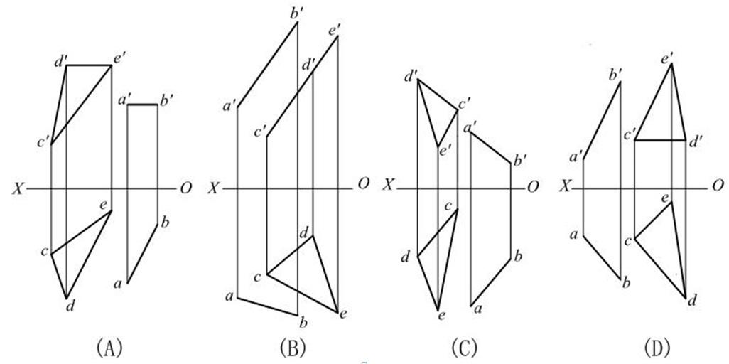 完成五边形平面ABCDE的水平投影,正确的是( )