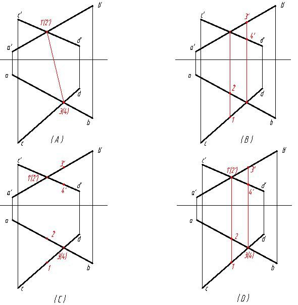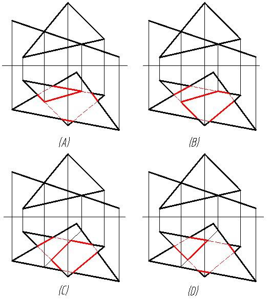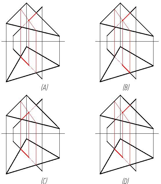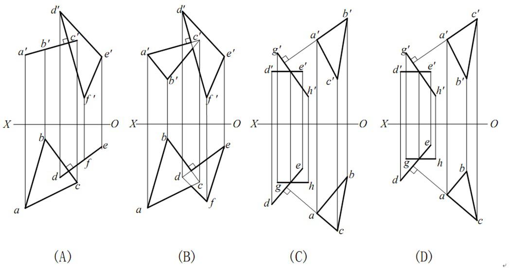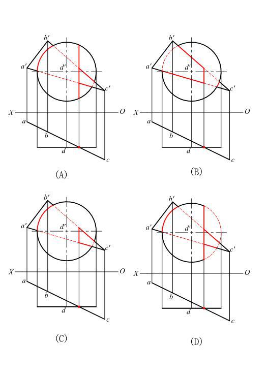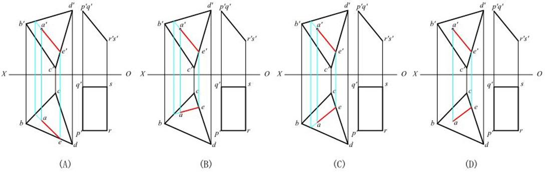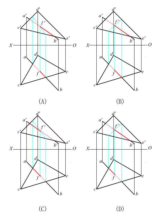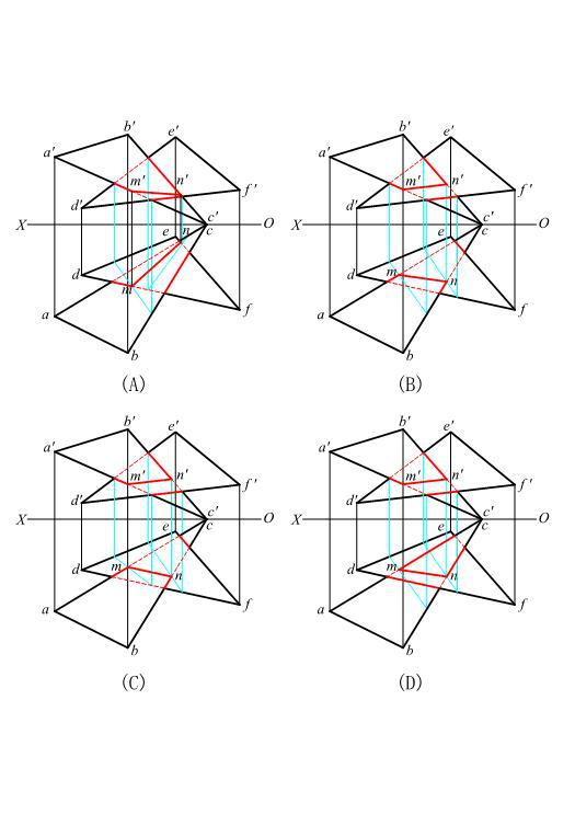 求两平面的交线,并判断可见性。正确的是( )