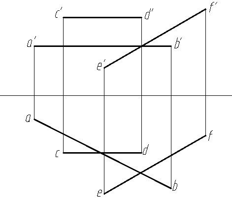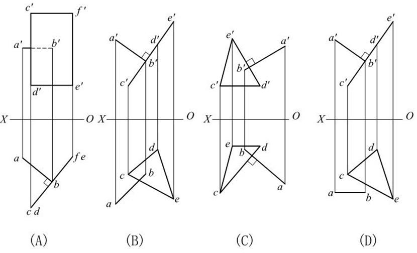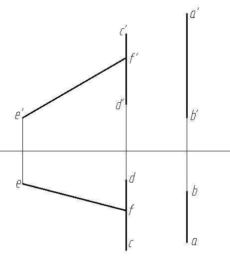 答案: 【 AB是水平线,CD是侧垂线,EF是一般位置直线】