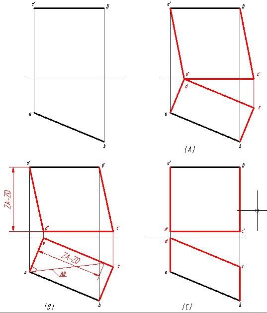 A: 直角三角形的一条直角边是直线的正面投影,另一条直角边是直线两端点的Y坐标差