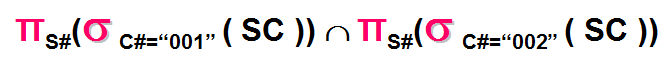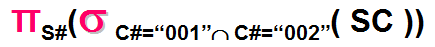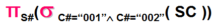关系如下图所示,查询既学习课程号为001课程又学习课程号为002号课程的学生的学号,正确的是_______