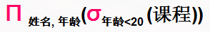 已知关系:学生(学号,姓名,性别,年龄), 课程(课程号,课程名,学分),选课(课程号,学号,成绩)。表达“查询年龄未满20岁的学生姓名及年龄”的关系代数表达式是_______