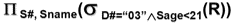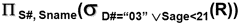 学生表如图所示,用关系代数查询所有在3系就读的且年龄小于21的学生的学号和姓名。表达正确的是________。