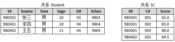 已知关系S(S#,Sname,Sage,Sclass), SC(S#,C#,Score)。如下所示关系代数表达式的含义是________。