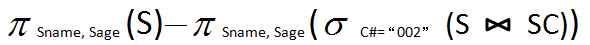 答案: 【 查询没有学习过课程号为002号课程的学生姓名和年龄】