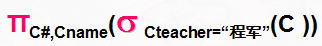 已知关系课程表C,用关系代数查询“程军”老师所授课程的课程号(C#)和课程名(Cname),正确的是__________。程表CC#CnameCteacherK1C语言王华K5数据库原理程军K8编译原理程军