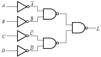 如果规定只能使用非门和2输入与非门来实现L=AB+AC,则正确的逻辑图是 .