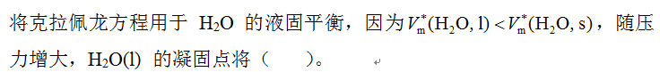 某纯物质处于气、液平衡,若其气化焓DvapHm>0,则温度升高时其平衡压力( )。