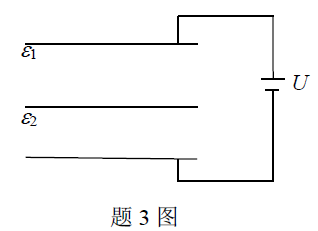 平板电容器中放置两层介质,外加电压为U,如题3图所示,若介电常数