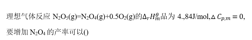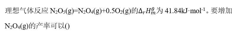 理想气体反应N2O5(g)== N2O4(g)+1/2O2(g)的DrHm为41.84kJ/mol。要增加N2O4(g)的产率可以( )