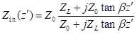 微波无耗TEM波传输线的等效输入阻抗的计算式