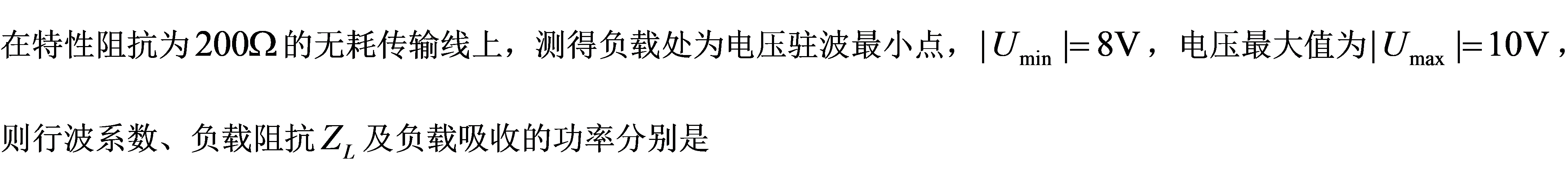 特性阻抗为 50Ω的长线终端接负载时 , 测得反射系数模 |Γ|=0.2, 则线上驻波比、电压波腹和波节处的输入阻抗分别为