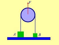 将一轻绳绕过一滑轮边缘,绳与滑轮之间无滑动,若 (1) 将重量为P的砝码挂在绳端; (2) 用一恒力为F=P向下拉绳端,如图所示,分别用