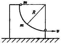 如图所示,一质量为m的小球由静止开始沿四分之一圆弧木槽滚动,木槽的质量也为m,槽的圆半径为R,放在光滑水平面上,若不计摩擦,则小球离开木槽时的速率应为 .( )